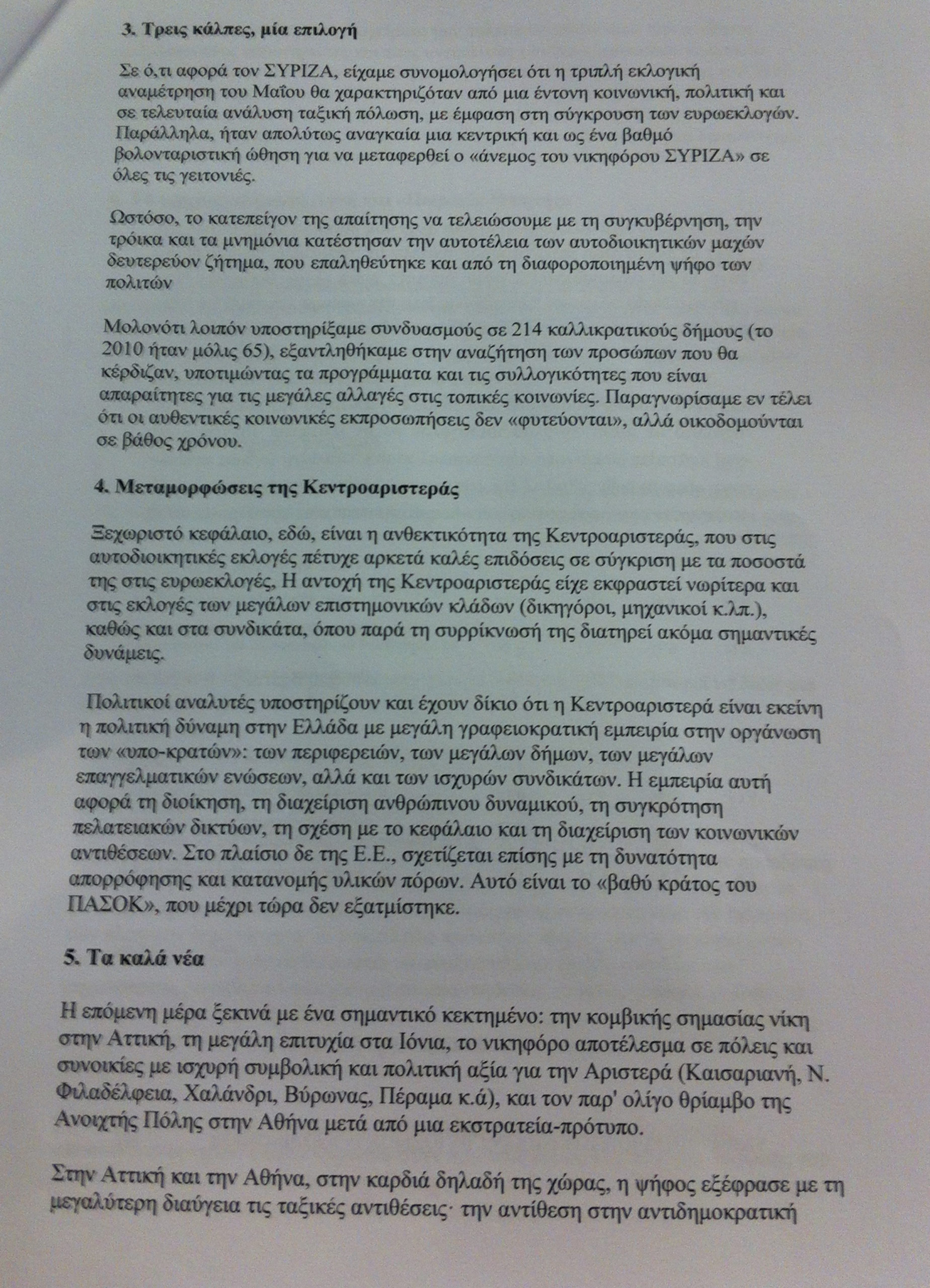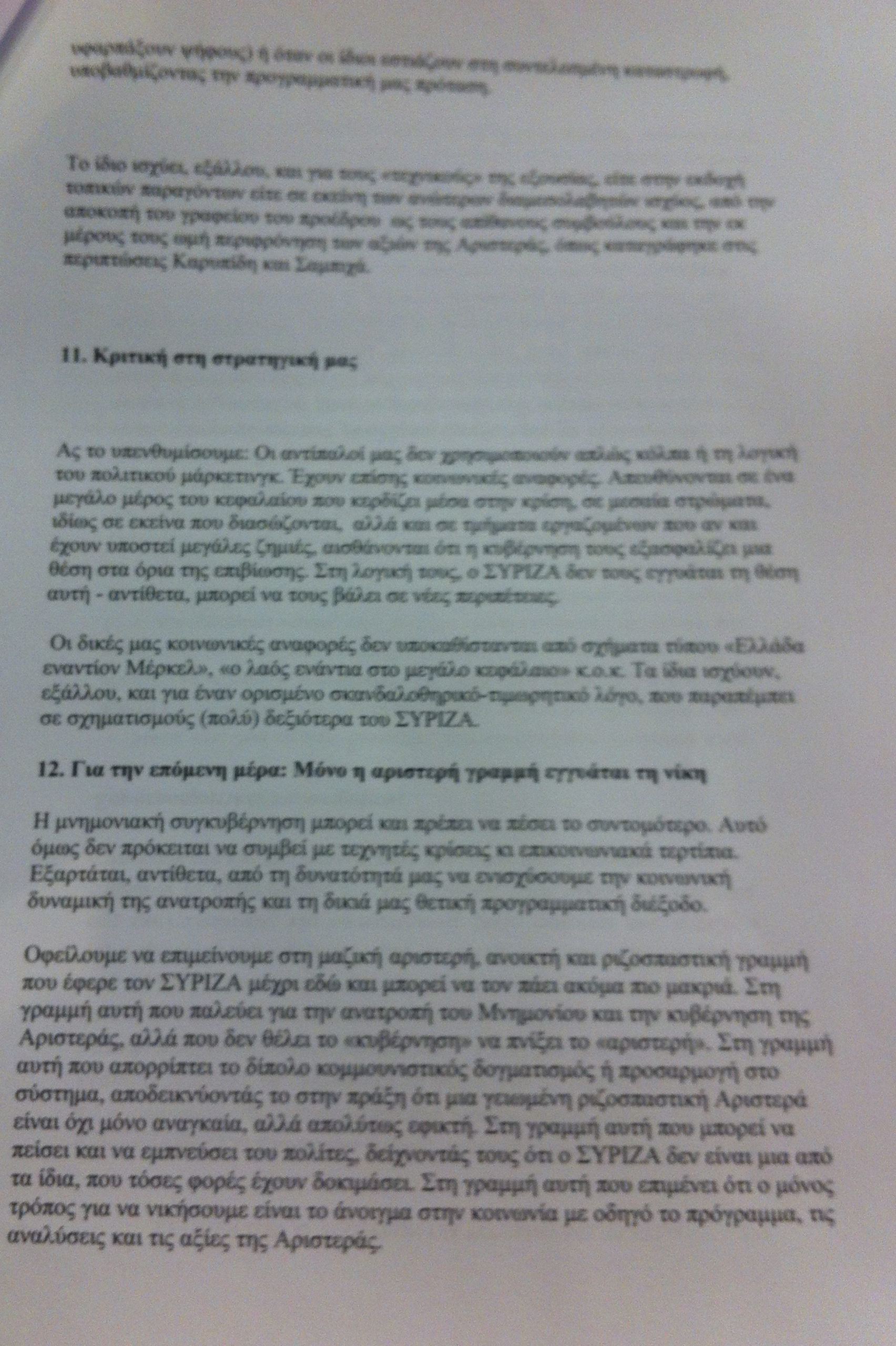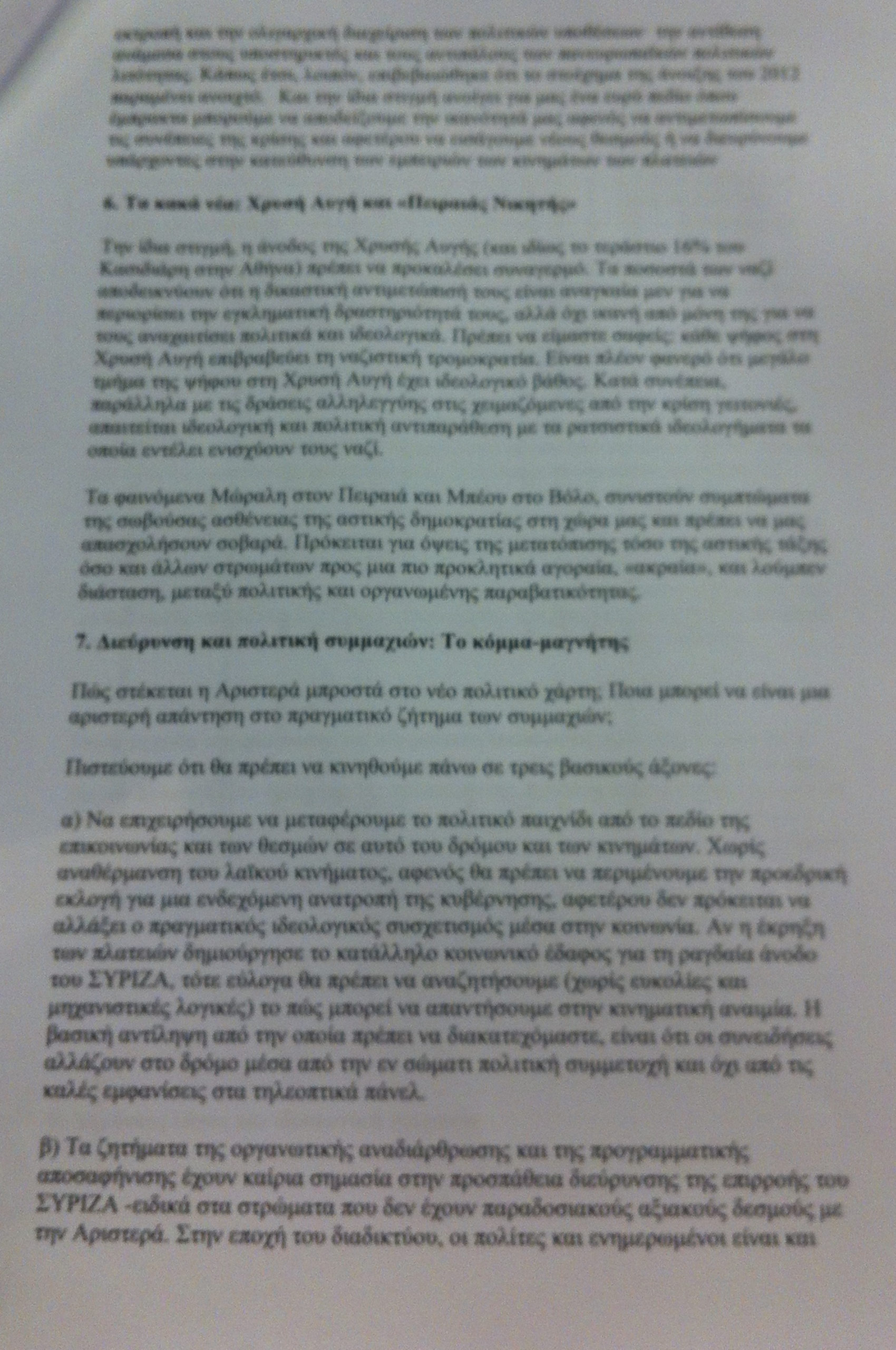 Επίσης, δεν είναι αντιπαραθετικό σε καμιά επίσημη γραμμή, απλούστατα διότι δεν έχει διαμορφωθεί ακόμα η εισήγηση προς την ΚΕ».