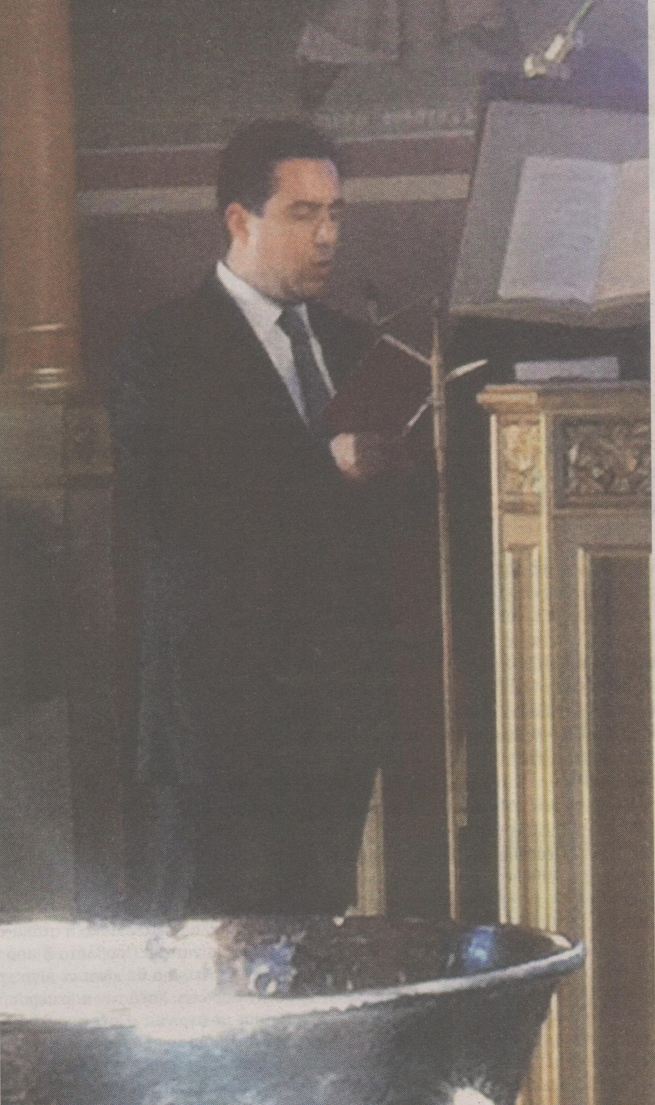 Ο υφυπουργός Ανάπτυξης, αφού χαιρέτησε τους ευτυχείς γονείς, ανέβηκε με την άδειά τους στο δεξιό ψαλτήρι και άρχισε να ψέλνει, συνοδεύοντας τους ιερείς. Η κίνηση του αυτή προκάλεσε σχόλια και συζητήσεις μεταξύ των παρευρισκομένων σχετικά με το “κρυφό” ταλέντο του.