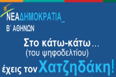 Στόχος του είναι να θυμίσει στους ψηφοφόρους ότι το «Χατζηδάκης» βρίσκεται στις τελευταίες θέσεις του ψηφοδελτίου της ΝΔ. Ο Κωστής Χατζηδάκης διεκδικεί να είναι ξανά στις πρώτες θέσεις της προτίμησης των ψηφοφόρων της Β΄Αθήνας.