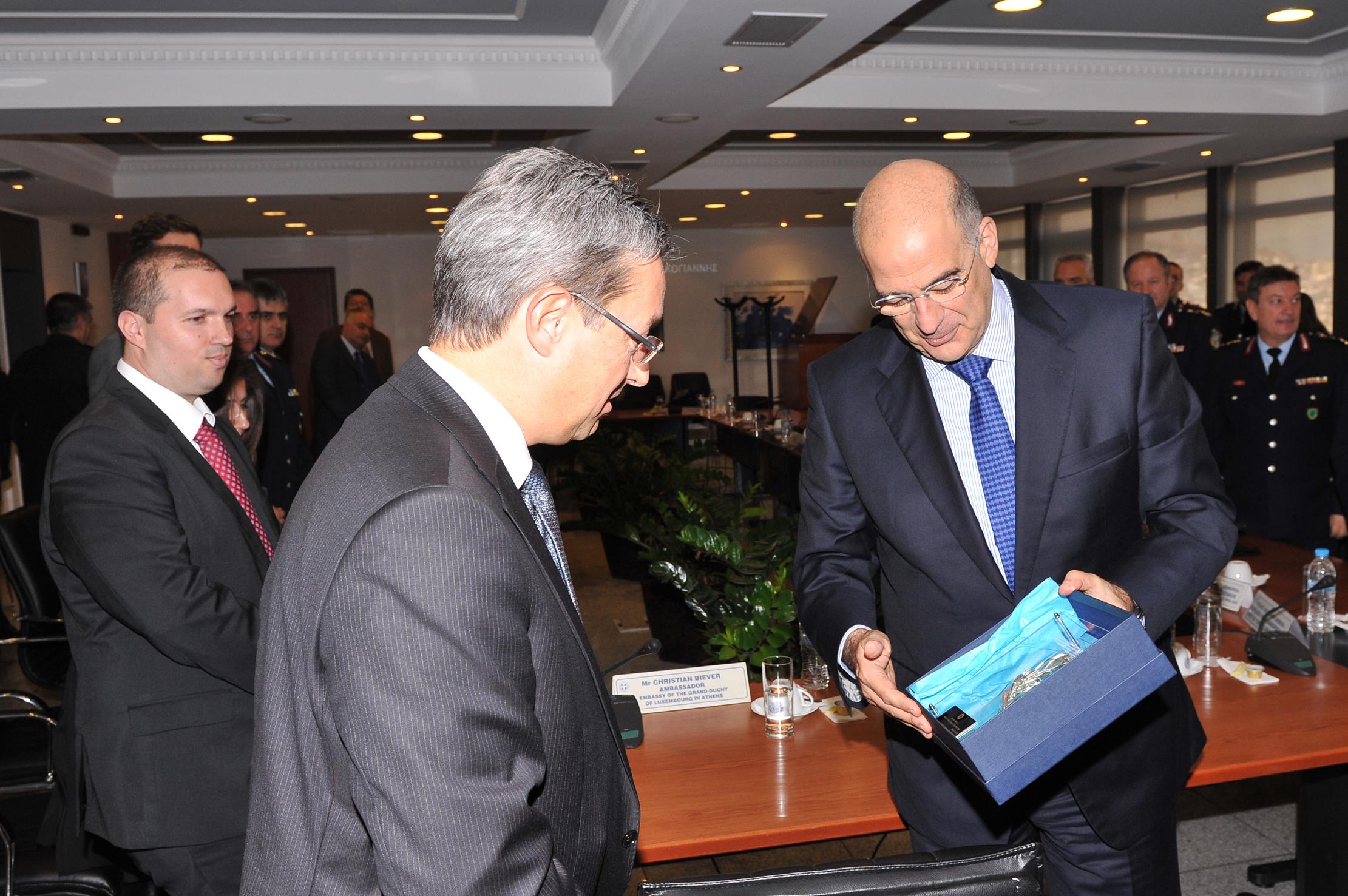 Στην τελετή παράδοσης – παραλαβής παρέστησαν ο Υπουργός Δημόσιας Τάξης και Προστασίας του Πολίτη κ. Νίκος Δένδιας, ο Γενικός Γραμματέας Δημόσιας Τάξης, κ. Αθανάσιος Ανδρεουλάκος και ο Πρέσβης του Λουξεμβούργου στη χώρα μας κ. Christian Biever.