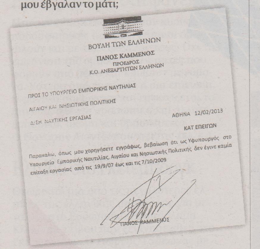 Το παρακάτω έγγραφο αναγράφεται αναλυτικά το αίτημα του προέδρου των Ανεξάρτητων Ελλήνων, όμως υπάρχει ένα… λαθάκι, που βγάζει μάτι. Το “Υπουργείο Εμπορικής ΝΑΥΤΗΛΙΑΣ”!.