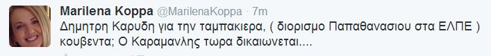 Συνέχεια στην κόντρα που έχει ξεσπάσει με αφορμή την τοποθέτηση του πρώην υπουργού, Γιάννη Παπαθανασίου στη θέση του προέδρου των ΕΛΠΕ, δίνει η ανεξάρτητη ευρωβουλευτής, Μαριλένα Κοππά, μέσω twitter.