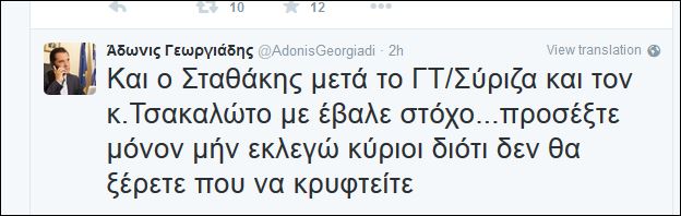 Ο Άδωνις Γεωργιάδης μέσω Twitter έστειλε ένα μήνυμα με αποδέκτες τους Γιώργο Σταθάκη και Ευκλείδη Τσακαλώτο.