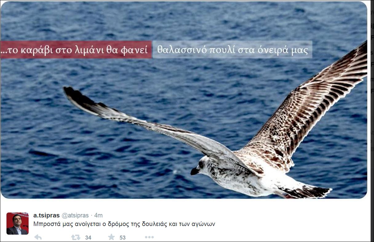Το πρώτο σχόλιο για τα αποτελέσματα των εκλογών έκανε ο πρόεδρος του ΣΥΡΙΖΑ, Αλέξης Τσίπρας μέσω twitter.