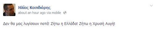 Στον προσωπικό του λογαριασμό στο facebook έγραψε πριν από περίπου μία ώρα, ο Ηλίας Κασιδιάρης, από τα δικαστήρια της πρώην σχολής Ευελπίδων.