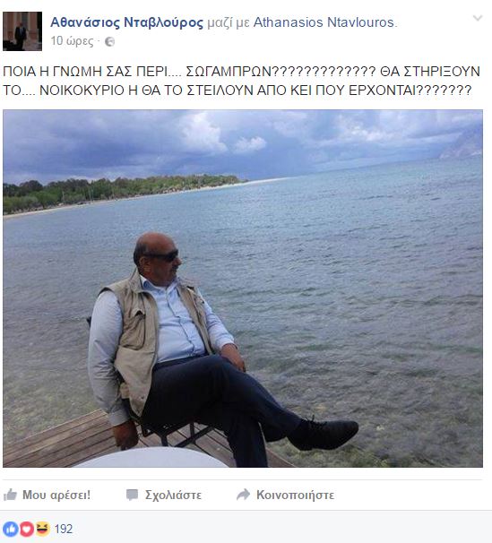 Μήνυμα με πολλούς αποδέκτες στέλνει μέσω Facebook ο πρώην βουλευτής Αχαΐας της ΝΔ Αθανάσιος Νταβλούρος.