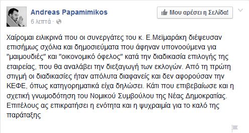 Ο κ. Παπαμιμίκος έγραψε στο Facebook: