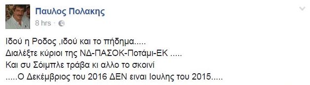 Και συ Σόιμπλε τράβα κι άλλο το σκοινί …Ο Δεκέμβριος του 2016 ΔΕΝ είναι Ιούλης του 2015…» έγραψε ο κ. Πολάκης.