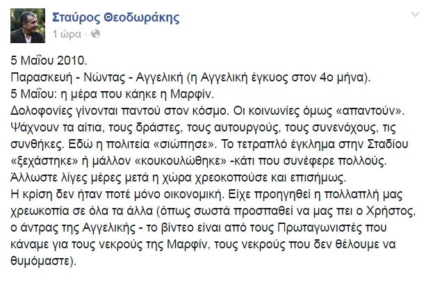 Δείτε αναλυτικά όσα έγραψε ο Σταύρος Θεοδωράκης στο facebook: