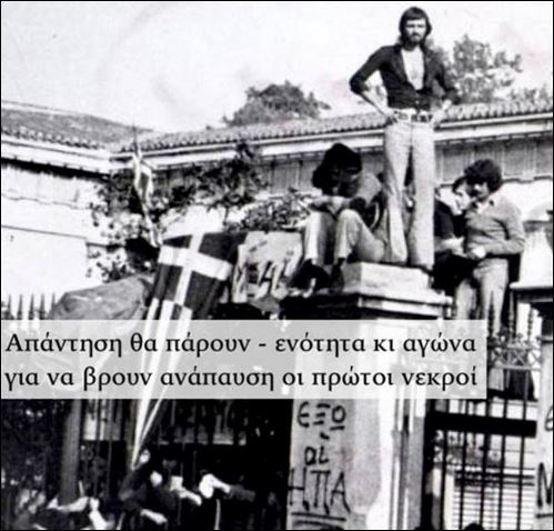 Είναι το καθήκον που μας ορίζει να σταθούμε αποφασιστικά αντίθετοι απέναντι σε κάθε κυβερνητικό αυταρχισμό και στο μονόδρομο των μνημονίων και της λιτότητας», έγραψε στο κοινωνικό μέσο δικτύωσης Facebook, ο Πρόεδρος του ΣΥΡΙΖΑ, με αφορμή την επέτειο των εκδηλώσεων για το Πολυτεχνείο,ενώ ανέβασε και την ακόλουθη φωτογραφία.