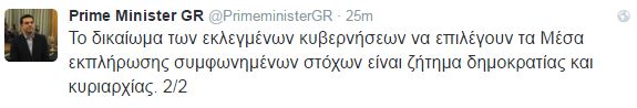 Σε δεύτερη ανάρτησή του τονίζει ότι «το δικαίωμα των εκλεγμένων κυβερνήσεων να επιλέγουν τα μέσα εκπλήρωσης συμφωνημένων στόχων είναι ζήτημα δημοκρατίας και κυριαρχίας».