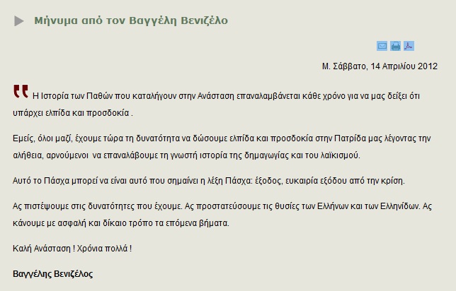 Το μήνυμά του για το Πάσχα ανέβασε στην προσωπική του ιστοσελίδα ο πρόεδρος του ΠΑΣΟΚ, Ευάγγελος Βενιζέλος.Διαβάστε το: