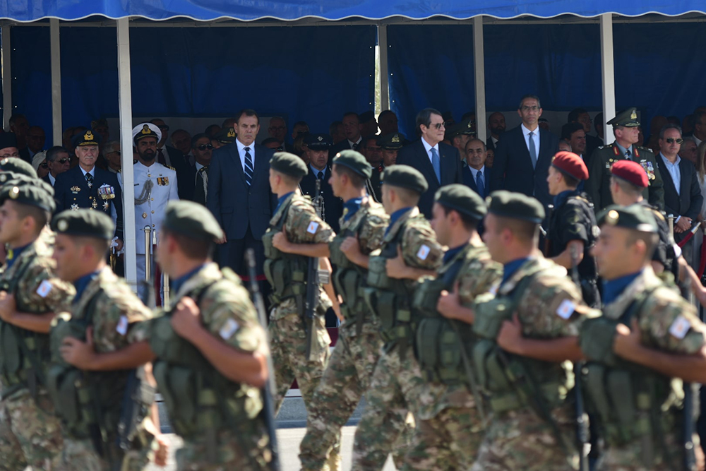 «Παρακολουθήσαμε με συγκίνηση και υπερηφάνεια τμήματα της Εθνικής Φρουράς μαζί με τμήματα των Σωμάτων Ασφαλείας της Κύπρου και φυσικά την Ελληνική Δύναμη Κύπρου να παρελαύνουν γεμάτα αυτοπεποίθηση, υπερηφάνεια, αλλά και με τα σύγχρονα οπλικά συστήματά τους. Νιώσαμε ότι η αποτρεπτική δύναμη των Ενόπλων Δυνάμεων Ελλάδας και Κύπρου είναι πάντα ισχυρή», πρόσθεσε.