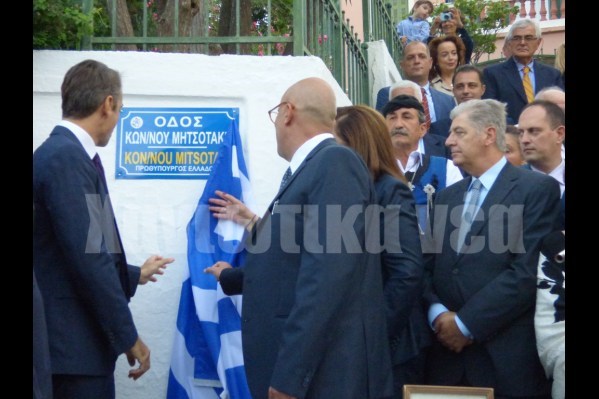 Είχε προηγηθεί επιμνημόσυνη δέηση για τον εκλιπόντα πολιτικό, από τον Μητροπολίτη Κυδωνίας – Αποκορώνου Δαμασκηνό και αμέσως μετά η αποκάλυψη της πινακίδας που φέρει το όνομα της οδού «Κωνσταντίνος Μητσοτάκης».