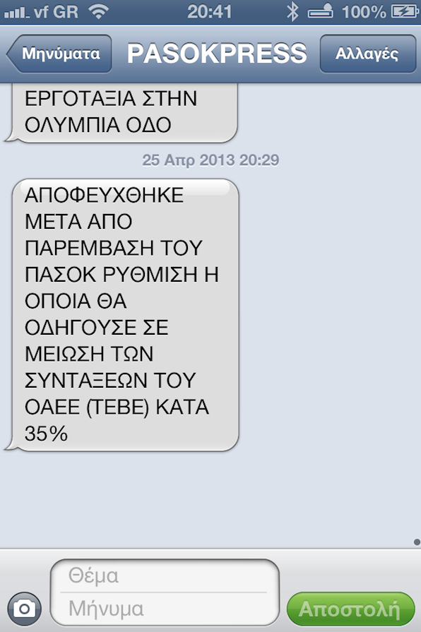 Το… πανηγυρικό sms του ΠΑΣΟΚ