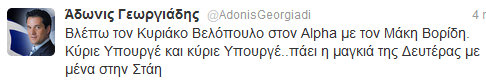 Το παράπονο του Άδωνι Enikos Newsroom 02:22, Πέμπτη 26 Απριλίου 2012 πολιτική ΑΔΩΝΙΣ ΓΕΩΡΓΙΑΔΗΣ ΚΥΡΙΑΚΟΣ ΒΕΛΟΠΟΥΛΟΣ ΜΑΚΗΣ ΒΟΡΙΔΗΣ Μοιράσου το: σχολίασε κι εσύ (0 σχόλια) Ακολουθήστε το enikos.gr στο Google News και μάθετε πρώτοι όλες τις ειδήσεις Δείτε όλες τις τελευταίες ειδήσεις από την Ελλάδα και τον Κόσμο στο enikos.gr Ειδήσεις Ροή Ειδήσεων 5 ώρες πριν Ζελένσκι: Γιατί πέταξε τώρα το μπαλάκι στον Πούτιν – Tα «αγκάθια» στις διαπραγματεύσεις και η πιθανή απάντηση του Κρεμλίνου 4 ώρες πριν Χριστούγεννα στα μπλόκα για τους αγρότες – Με λιγότερα προβλήματα από τις προηγούμενες ημέρες η κυκλοφορία των οχημάτων 7 ώρες πριν Τουρκία: Λεπτό προς λεπτό οι επικοινωνίες του πιλότου του Φάλκον πριν από την συντριβή – Είχε εκπέμψει πολλαπλά σήματα κινδύνου 4 ώρες πριν Κακοκαιρία: «Βούλιαξε» η Αττική, οι δρόμοι μετατράπηκαν σε ποτάμια, πλημμύρισαν υπόγεια – Πώς θα εξελιχθούν τα έντονα φαινόμενα 8 ώρες πριν Σέρρες: Αγωνία για τον πυροσβέστη που εξαφανίστηκε – Έφυγε από το σπίτι χωρίς το κινητό, πότε τον είδαν για τελευταία φορά 4 ώρες πριν Εκπληκτική ανακάλυψη σε αρχαία πόλη της Μικράς Ασίας – Βρέθηκε πέτρινη σκάλα 1.800 ετών που οδηγούσε σε διάσημη βιβλιοθήκη 5 ώρες πριν Ύπνος: Τι θα συμβεί στον εγκέφαλό σας όταν σταματήσετε να κοιτάτε το κινητό μόλις ξυπνάτε το πρωί 6 ώρες πριν Αριθμολογία: Οι άνθρωποι που έχουν γεννηθεί αυτές τις 3 ημερομηνίες, διαθέτουν 5 μοναδικά χαρακτηριστικά – «Ξεχωρίζετε από όλους» 7 ώρες πριν Πλύσιμο πιάτων: Το έξυπνο κόλπο που διευκολύνει την διαδικασία όταν έχετε καλεσμένους στο σπίτι 2 ώρες πριν Εφημερεύοντα φαρμακεία σε Αθήνα και Θεσσαλονίκη (25/12) 20 λεπτά πριν Φοίβος: Αποκάλυψε την ιστορία πίσω από τα «Χριστούγεννα» της Δέσποινας Βανδή – ΒΙΝΤΕΟ 38 λεπτά πριν Παναθηναϊκός: Στις 39.074 θέσεις η τελική χωρητικότητα του νέου γηπέδου στον Βοτανικό 58 λεπτά πριν Ονδούρα: Νικητής ο Νάσρι Ασφούρα στις προεδρικές εκλογές – Τον είχε στηρίξει Ντόναλντ Τραμπ 1 ώρα πριν ΗΠΑ: Ανακαλύφθηκαν πάνω από 1 εκατ. νέα έγγραφα που μπορεί να σχετίζονται με την υπόθεση Επστάιν ENIKOS NETWORK Πώς να αποφύγετε τους τοξικούς καβγάδες με την οικογένειά σας αυτά τα Χριστούγεννα ΕΟΔΥ: Οι «χρυσές» συμβουλές για να απολαύσουμε το Χριστουγεννιάτικο τραπέζι χωρίς υπερβολές Aποκαλυπτικά στοιχεία: Το 65% των παιδιών που ξεκινούν σήμερα το δημοτικό, «θα εργαστεί σε επαγγέλματα που δεν έχουν καν επ... «Εξοικονομώ 2025»: Τα ποσά και οι προθεσμίες – Όλα τα SOS πρέπει να γνωρίζετε Ο Google Assistant θα παραμείνει λίγο περισσότερο για ορισμένους χρήστες Android Τεστ προσωπικότητας: Το βάζο που θα επιλέξετε αποκαλύπτει πώς λύνετε προβλήματα στη ζωή σας περισσότερα 17:40 , Τετάρτη 24 Δεκεμβρίου 2025 Νέες απειλές Ερντογάν: Δεν θα επιτρέψουμε να καταπατηθούν τα δικαιώματά μας σε Αν. Μεσόγειο, Αιγαίο και Κύπρο Στο Αιγαίο, στην Ανατολική Μεσόγειο και την Κύπρο αναφέρθηκε, μεταξύ άλλων, ο Ρετζέπ Ταγίπ Ερν... 16:05 , Τετάρτη 24 Δεκεμβρίου 2025 Κίμπερλι Γκίλφοϊλ: «Ο Θεός να ευλογεί την Ελλάδα και τις ΗΠΑ» – Οι ευχές της για τα Χριστούγεννα «Καθώς μαζευόμαστε με τους αγαπημένους μας και αναπολούμε την απίστευτη χρονιά που πέρασε, στέ... 14:05 , Τετάρτη 24 Δεκεμβρίου 2025 Χριστουγεννιάτικα κάλαντα από την Πανηπειρωτική Συνομοσπονδία στον Σωκράτη Φάμελλο – Ο χορός του προέδρου του ΣΥΡΙΖΑ Στην Κουμουνδούρου ο πρόεδρος του ΣΥΡΙΖΑ, Σωκράτης Φάμελλος μαζί με τη σύζυγό του και τους συν... 13:07 , Τετάρτη 24 Δεκεμβρίου 2025 Προεδρικό Μέγαρο: Έψαλαν τα κάλα