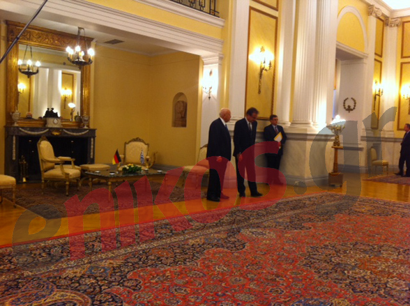 Πλούσιο είναι το παρασκήνιο της συνάντησης του Προέδρου της Δημοκρατίας Κάρολου Παπούλια με την γερμανίδα καγκελάριο Angela Merkel. Δείτε το φωτορεπορτάζ του enikos.gr. Πριν από τη συνάντηση, ένα άγημα ευζώνων της Προεδρικής Φρουράς πηγαίνει να παραταχθεί στον κήπο του Προεδρικού Μεγάρου προκειμένου να αποδώσει τιμές στην καγκελάριο της Γερμανίας.