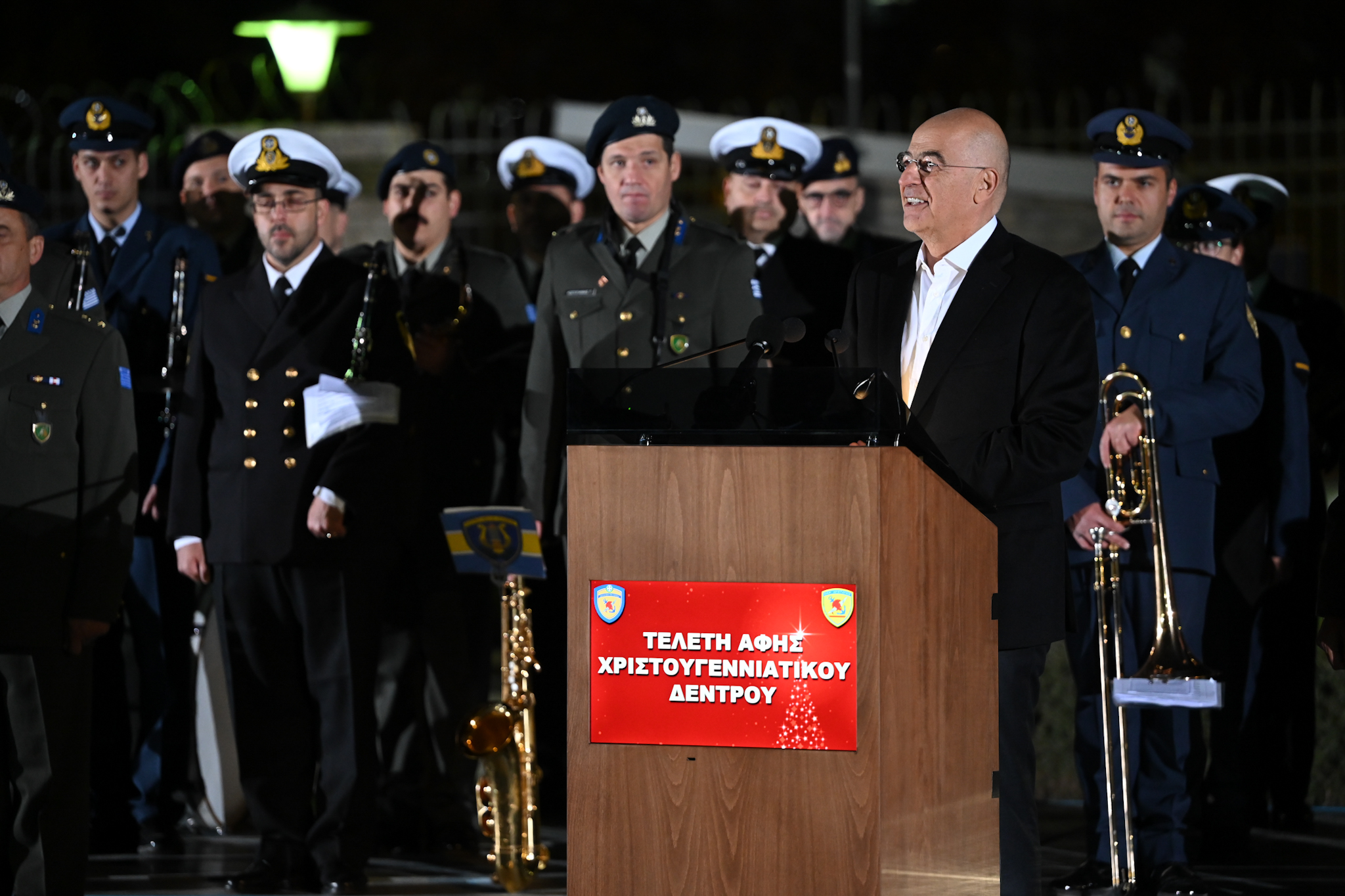 «Το Χριστουγεννιάτικο δέντρο, τα φώτα του δεν είναι μία διαφήμιση ενός καταναλωτικού προτύπου, όπως προσλαμβάνεται σε πολλές κοινωνίες σήμερα. Είναι ένας πολύ βαθύς συμβολισμός. Είναι η άρνηση του σκότους και της νύχτας. Είναι η έλευση και η επικράτηση της νέας ζωής» τόνισε στον χαιρετισμό του ο υπουργός Εθνικής Άμυνας, επισημαίνοντας ότι σε «μία εποχή που αντιμετωπίζουμε προκλήσεις και προβλήματα, ακόμα και η συμβολική πράξη της φωταγώγησης του Χριστουγεννιάτικου Δέντρου μπορεί να γίνει ένα σύμβολο αισιοδοξίας για το αύριο και ιδιαίτερα για τη μεγάλη οικογένεια των Ενόπλων μας Δυνάμεων».