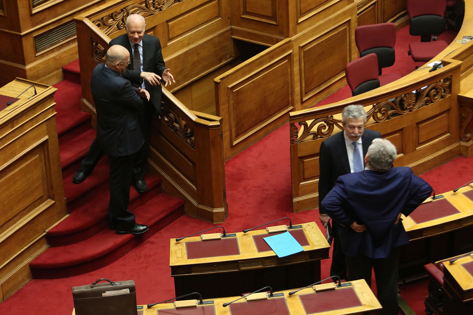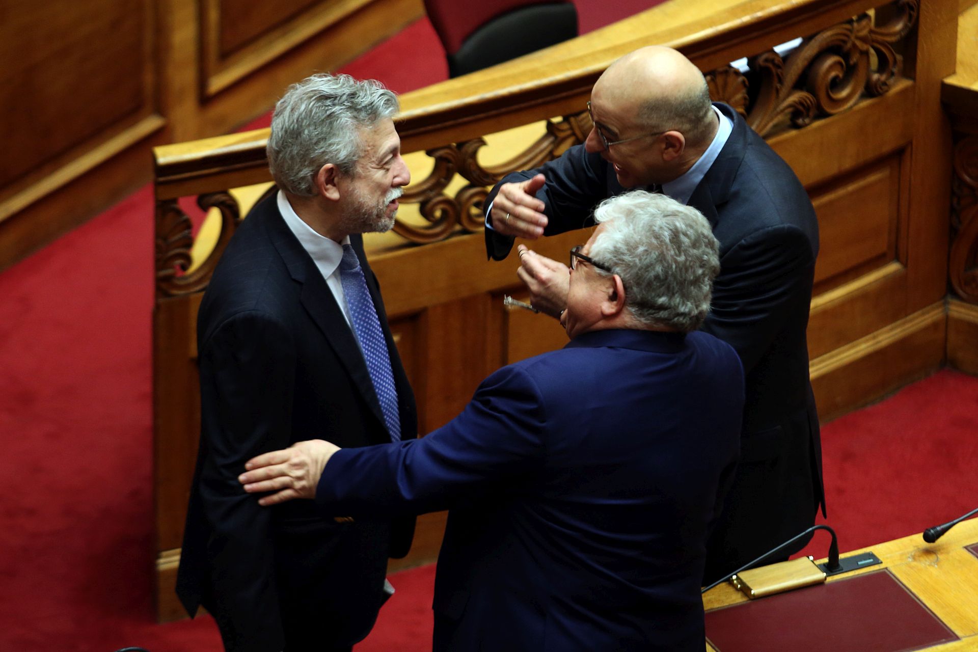 Λίγο πριν την έναρξη της προ ημερησίας διάταξης συζήτηση στη Βουλή σχετικά με θέματα του υπουργείου Αγροτικής Ανάπτυξης, ο φωτογραφικός φακός κατέγραψε το «πηγαδάκι» του υπουργού Δικαιοσύνης, Σταύρου Κοντονή, ο οποίος συνομιλούσε με τους βουλευτές της ΝΔ Κώστα Τζαβάρα και Νίκο Δένδια.