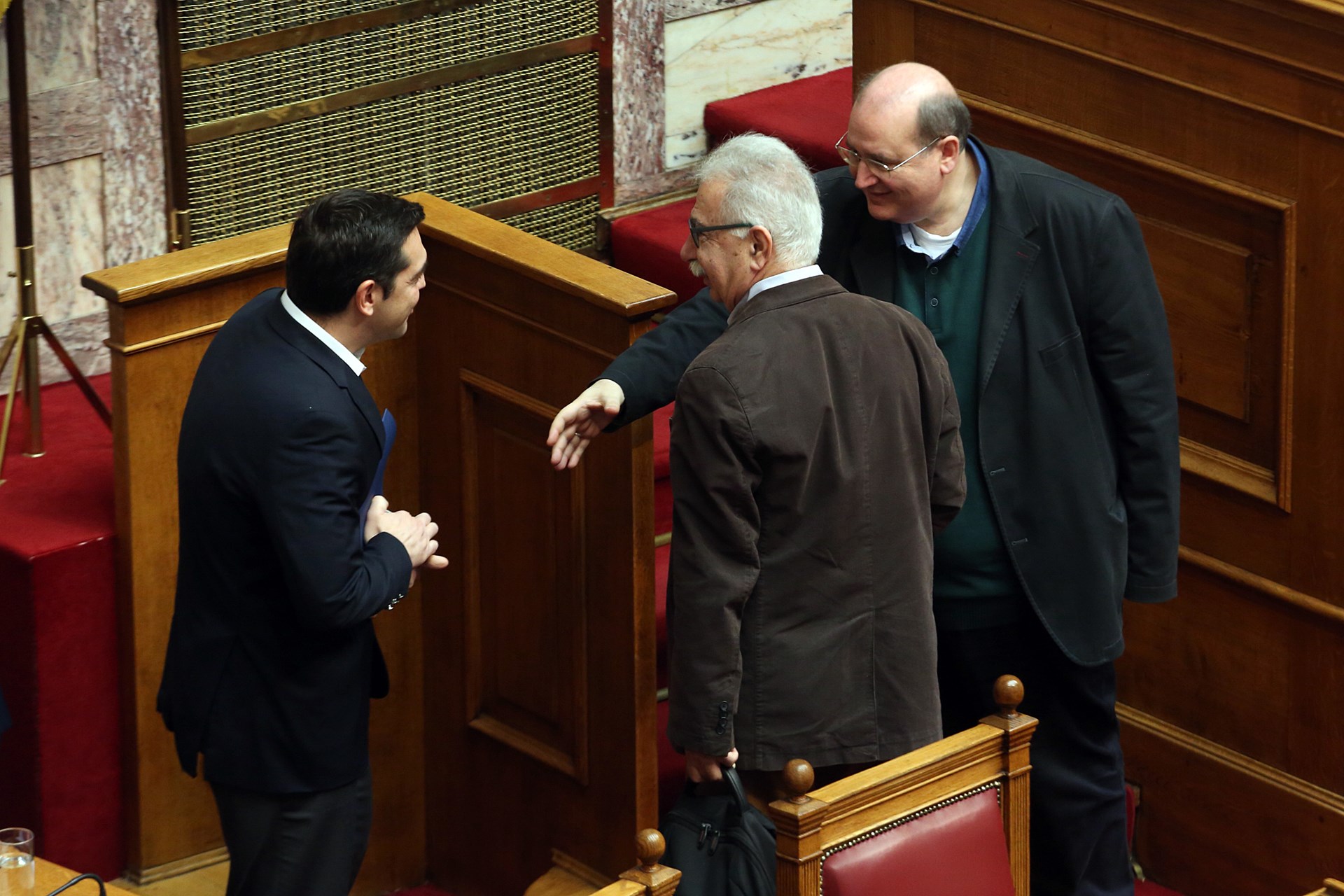 Το “πηγαδάκι” του Πρωθυπουργού Αλέξη Τσίπρα, του υπουργού Παιδείας Κώστα Γαβρόγλου και του πρώην υπουργού Παιδείας Νίκου Φίλη στη Βουλή, κατέγραψε ο φωτογραφικός φακός.