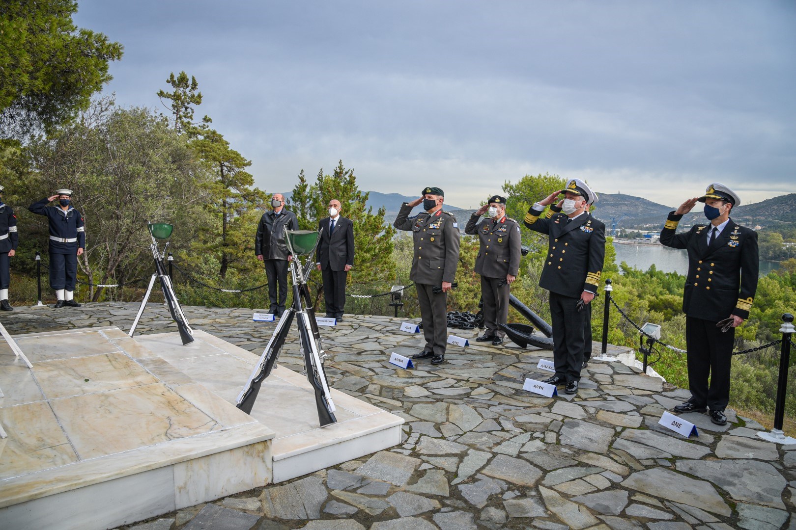 Στην τελετή παρέστησαν ο Αρχηγός ΓΕΕΘΑ Στρατηγός Κωνσταντίνος Φλώρος, ο Αρχηγός ΓΕΝ Αντιναύαρχος Στυλιανός Πετράκης ΠΝ, ο Αρχηγός ΓΕΑ Αντιπτέραρχος (Ι) Γεώργιος Μπλιούμης, ο Αρχηγός ΓΕΣ Αντιστράτηγος Χαράλαμπος Λαλούσης, ο Αρχηγός Λ.Σ.-ΕΛ.ΑΚΤ. Αντιναύαρχος ΛΣ Θεόδωρος Κλιάρης, ο Διοικητής ΔΝΕ Υποναύαρχος Χαράλαμπος Ζησιμόπουλος ΠΝ, καθώς και ο Πρόεδρος της ΕΑΑΝ Αντιναύαρχος ε.α. Θεόδωρος Γερούκης ΠΝ και ο Πρόεδρος του ΣΑ/ΣΜΥΝ Αντιπλοίαρχος (Ε) ε.α. Άγγελος Γαλανός ΠΝ.