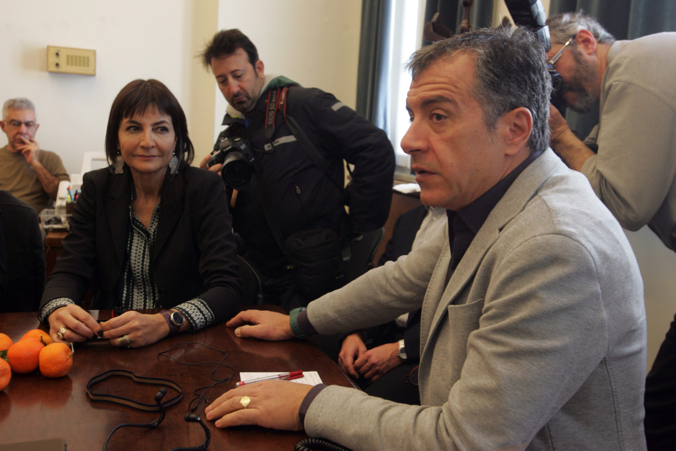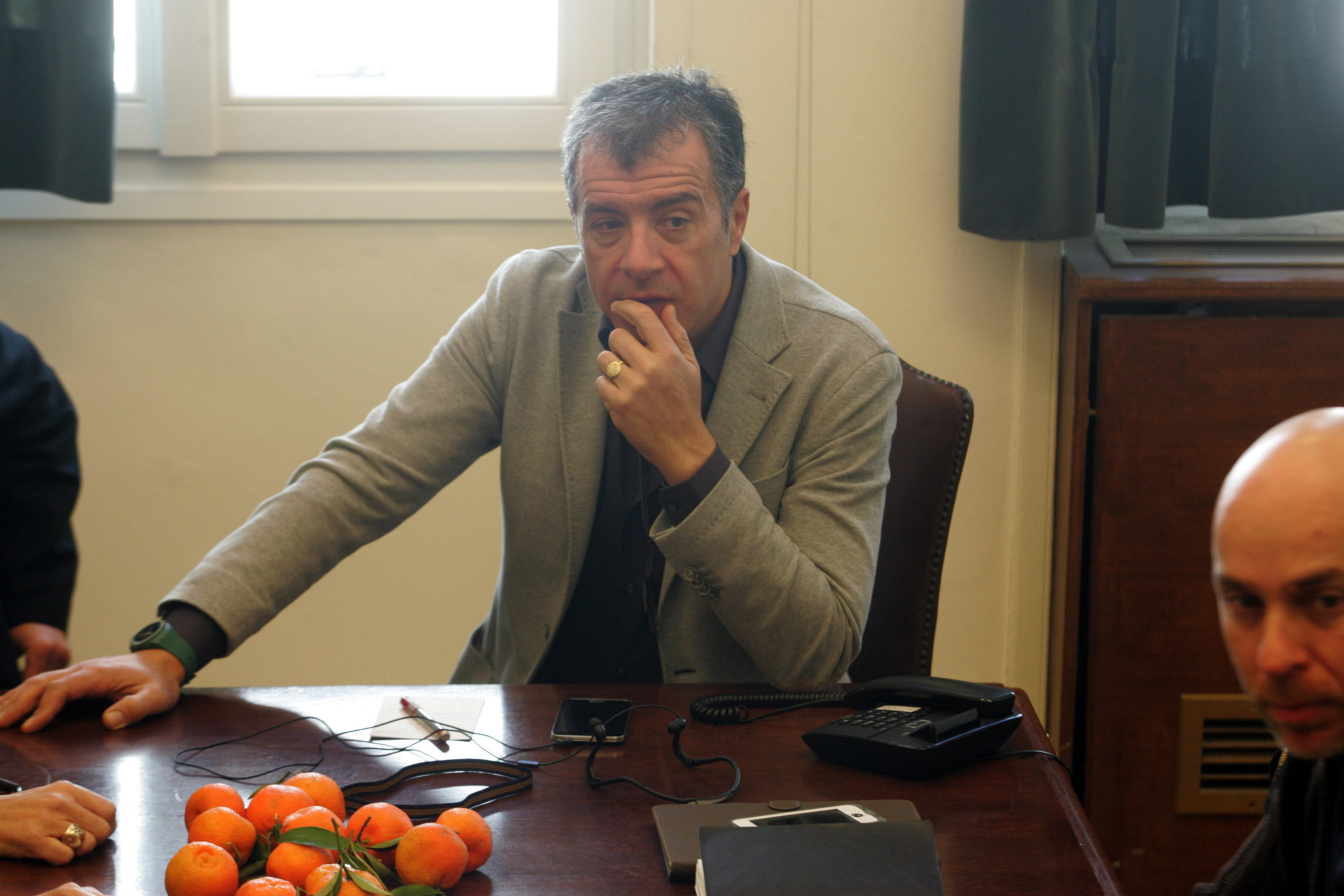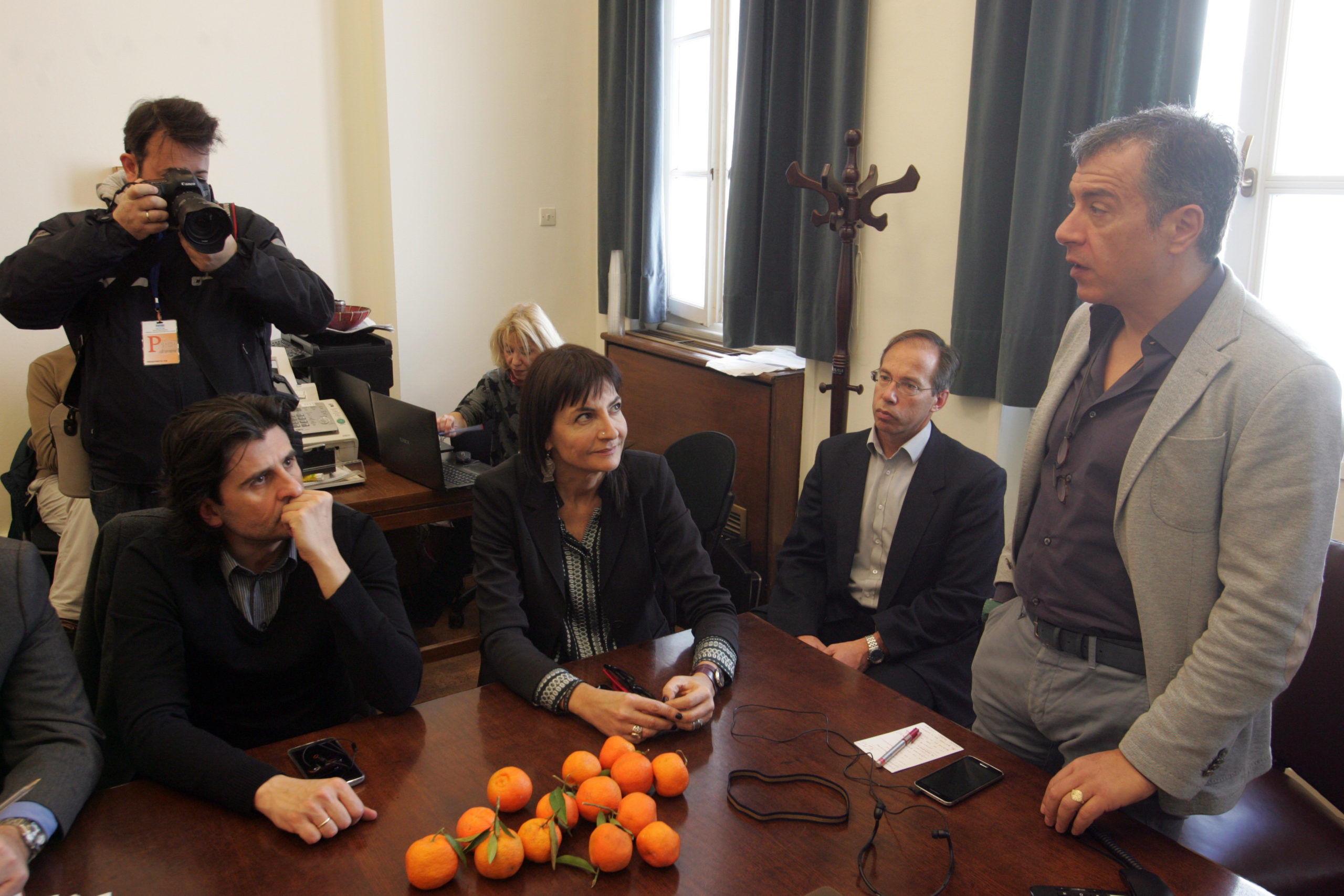 Ο επικεφαλής του Ποταμιού, Σταύρος Θεοδωράκης άνοιξε με μία χαρτοσακούλα με… μανταρίνια πριν αρχίσει η συνεδρίαση του κόμματος.
