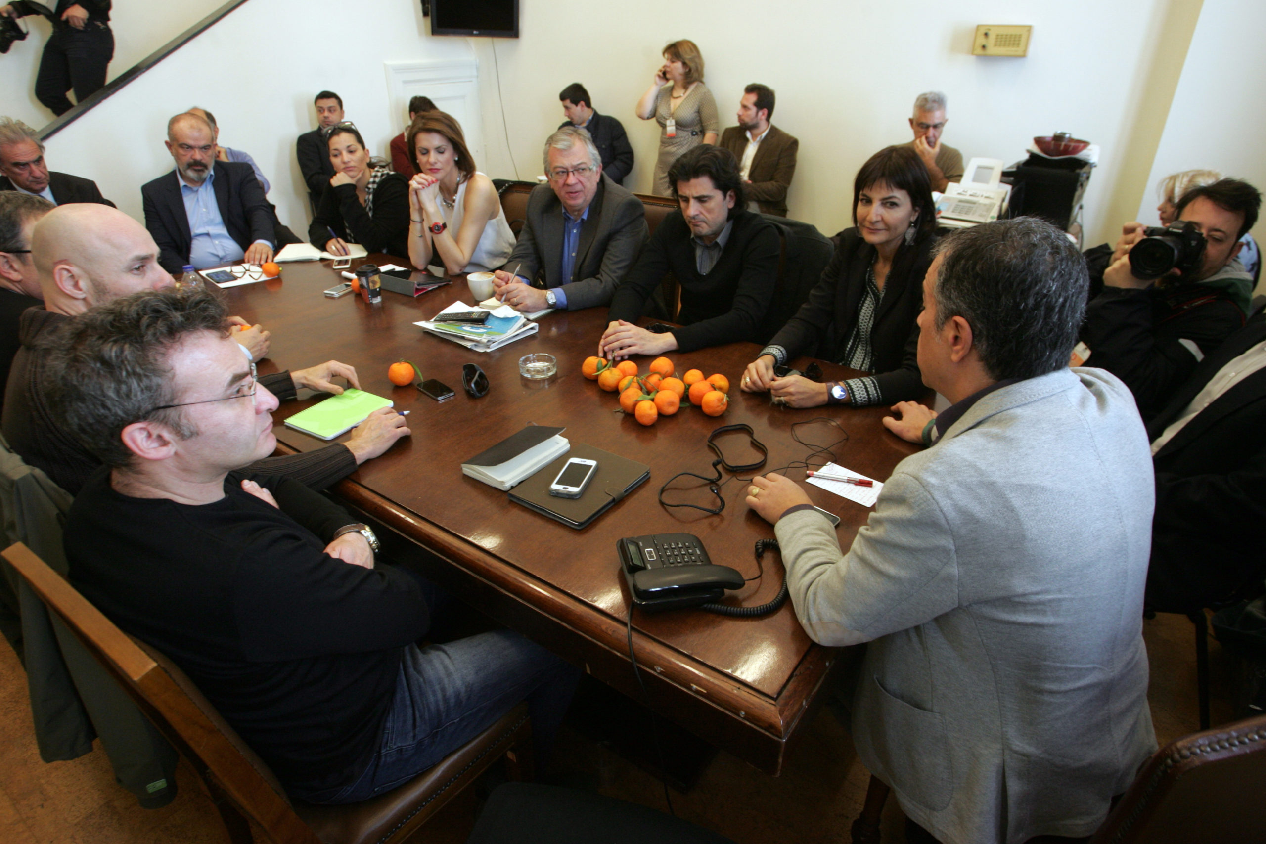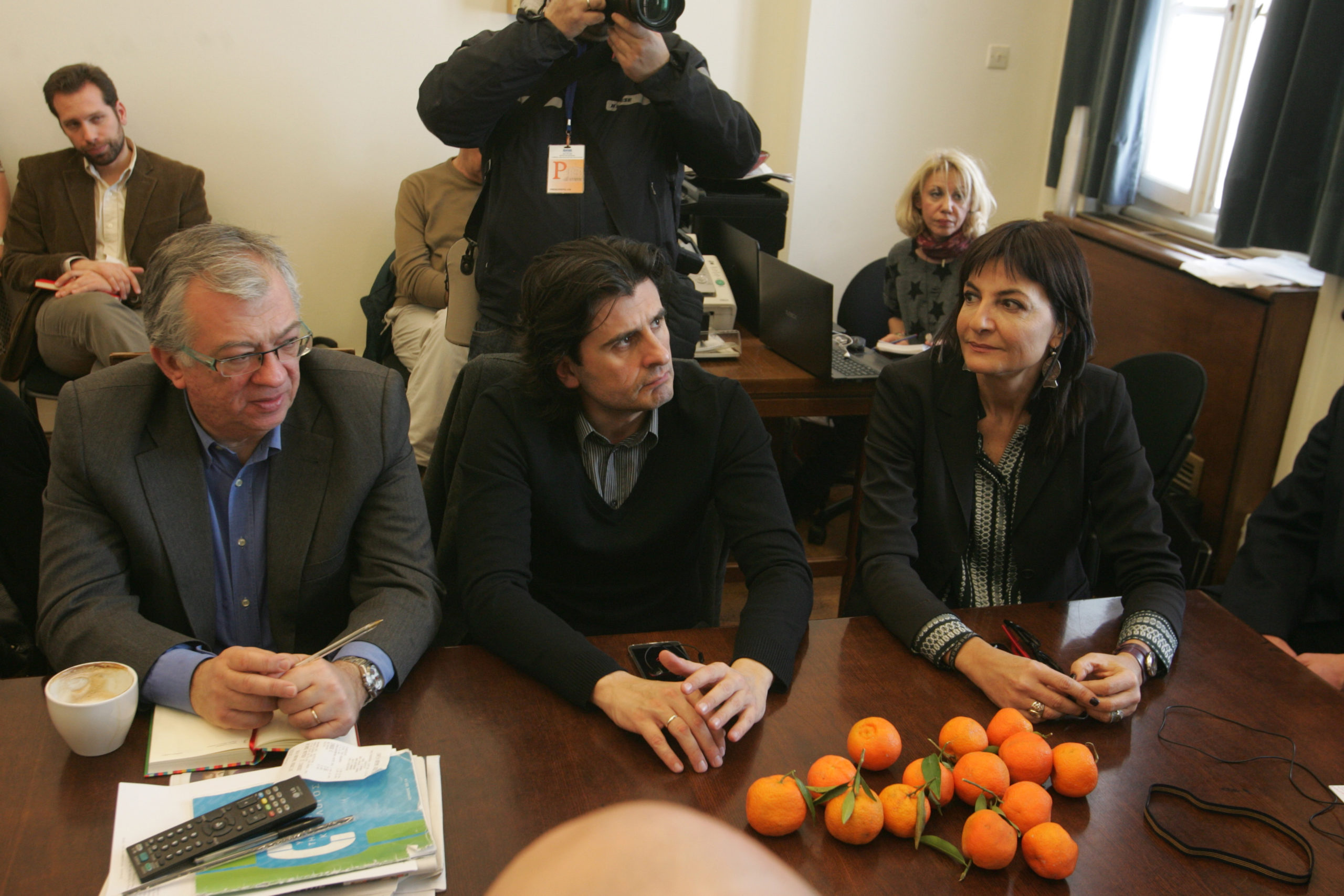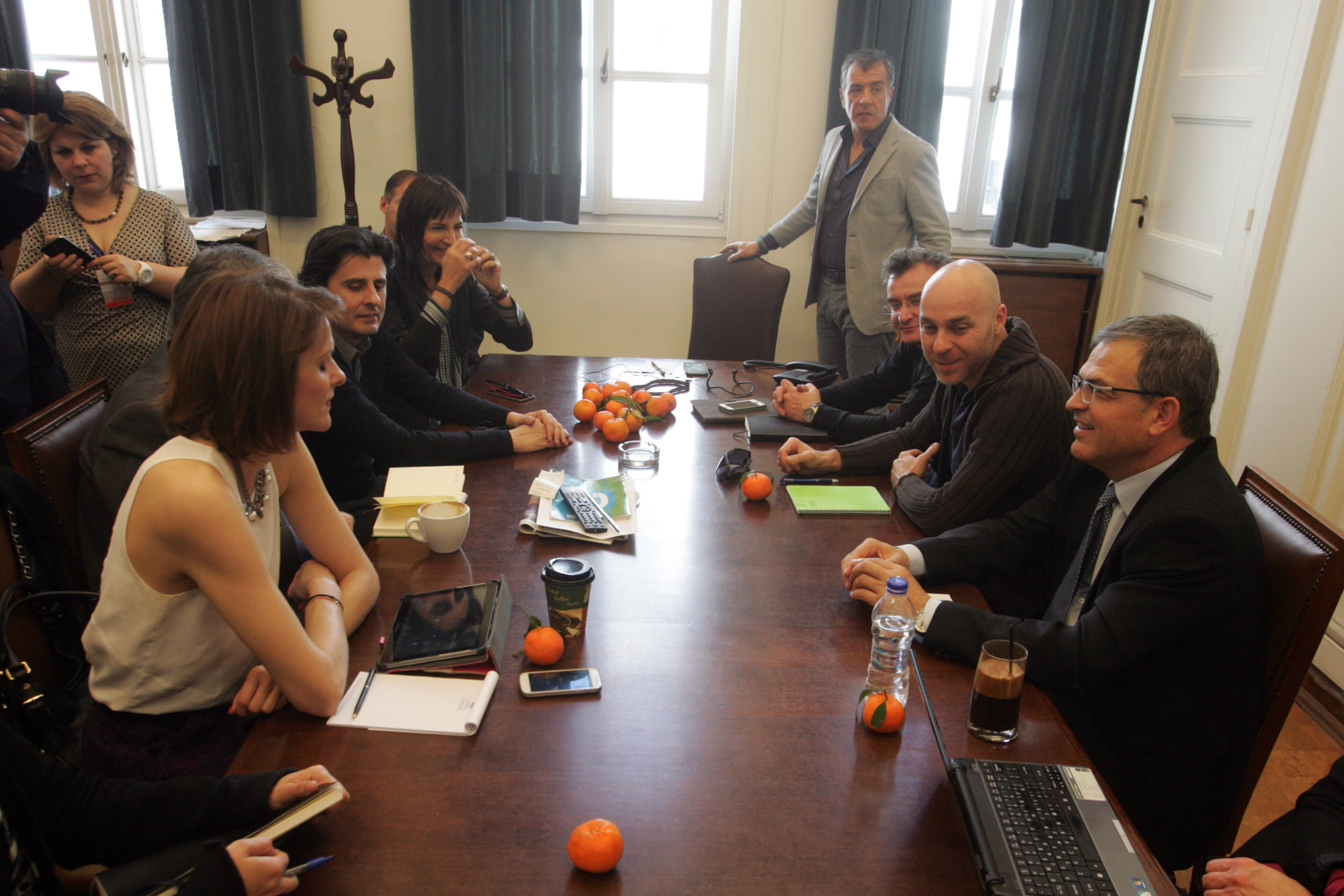Ο επικεφαλής του Ποταμιού, Σταύρος Θεοδωράκης άνοιξε με μία χαρτοσακούλα με… μανταρίνια πριν αρχίσει η συνεδρίαση του κόμματος.