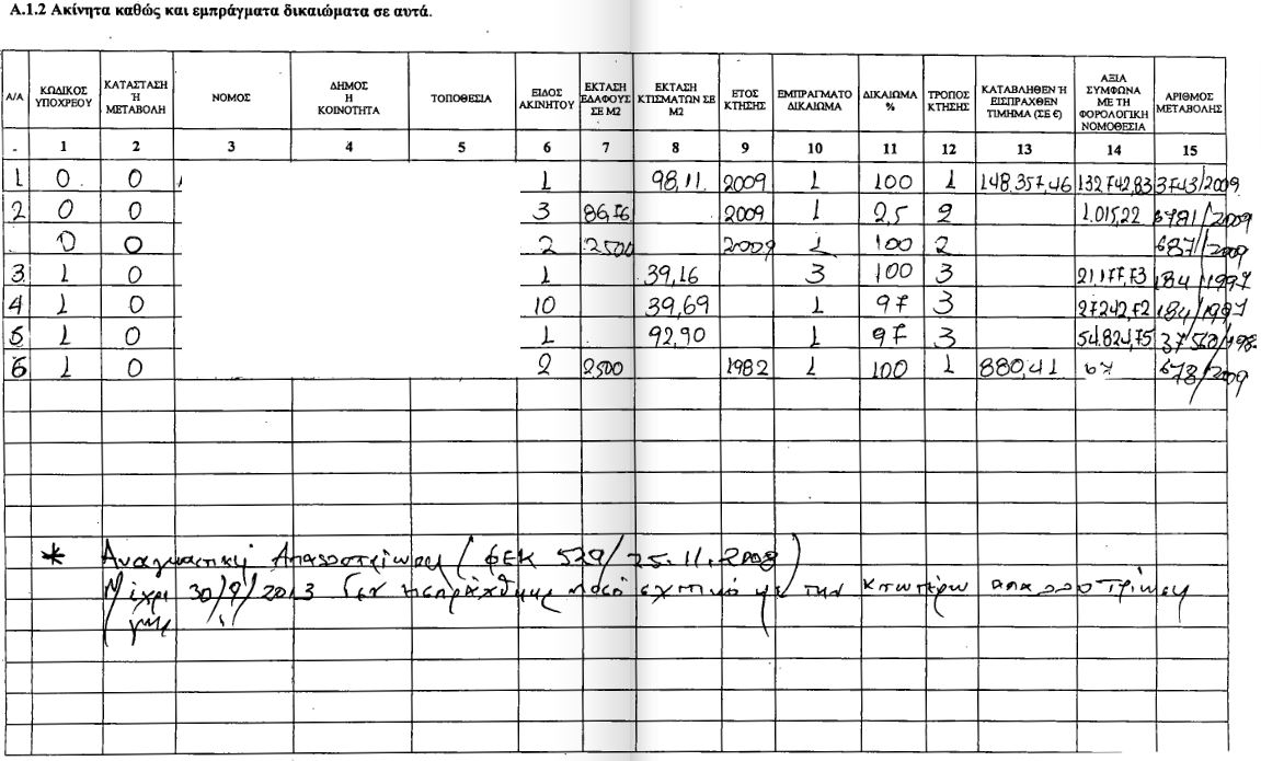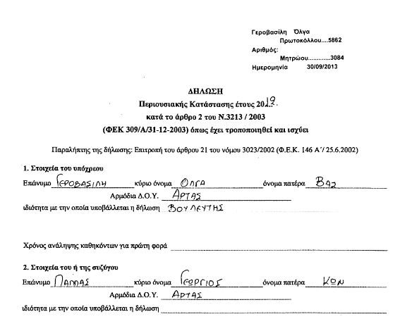Δείτε το πόθεν έσχες της κυβερνητικής εκπροσώπου, Όλγας Γεροβασίλη, όπως δόθηκε στη δημοσιότητα για το οικονομικό έτος 2013 (χρήση 2012).