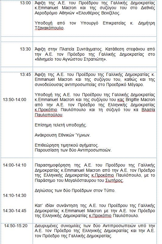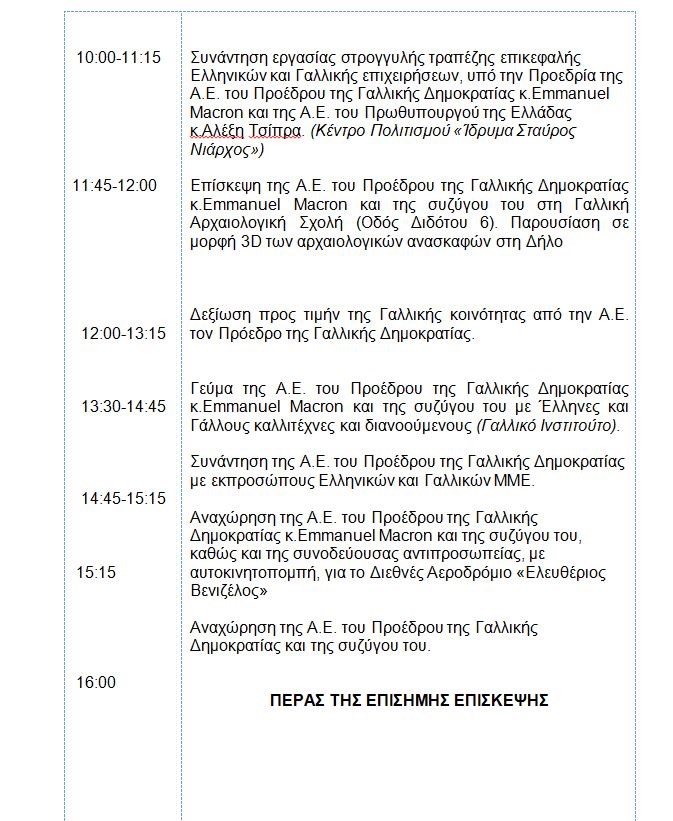 Το πρόγραμμα της επίσημης επίσκεψης Μακρόν στην Ελλάδα