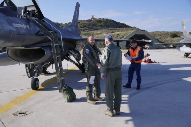 Πετώντας με ένα F-16, ο Αρχηγός ΓΕΑ, Αντιπτέραρχος Θεμιστοκλής Μπορολιάς, έφθασε στην Σκύρο, απ’ όπου καθημερινά απογειώνονται για εποπτεία του εναέριου χώρου τα «γεράκια» της Πολεμικής μας Αεροπορίας.