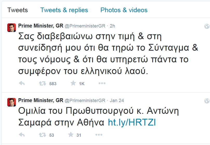 Αλλαγή σκυτάλης και στο Twitter μετά την ορκωμοσία του Αλέξη Τσίπρα ως Πρωθυπουργού.