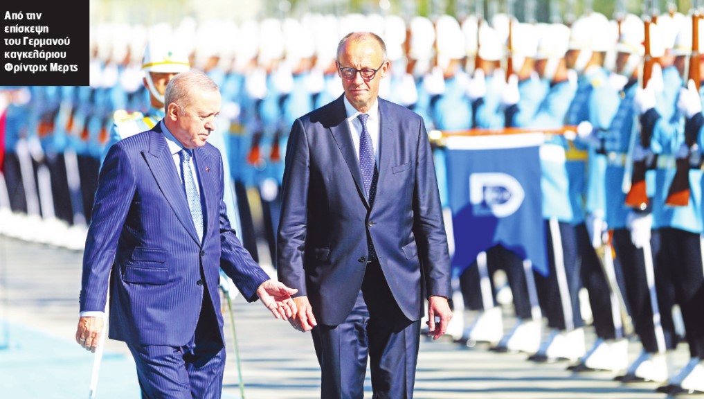 Η μετατόπιση της Γερμανίας είναι εντυπωσιακή. Επειτα από χρόνια εμπάργκο σε εξαγωγές όπλων, το Βερολίνο εγκρίνει την πώληση Eurofighter και επαναφέρει τη γλώσσα του «στρατηγικού διαλόγου». Χαρακτηριστική της αλλαγής αυτής ήταν και η απουσία συναντήσεων του Μερτς με την τουρκική αντιπολίτευση, σε πλήρη αντίθεση με τους προκατόχους του. Ο αρθρογράφος της καθεστωτικής «Milliyet», Οζάι Σεντίρ, σημείωσε ότι «στη νέα θετική ατζέντα, η σκηνή ανήκει στη Γερμανία». Η βιομηχανική της εξάρτηση από την τουρκική τεχνογνωσία σε UAV και θωρακισμένα οχήματα, σε συνδυασμό με τις πιέσεις από τη Ρωσία, την οδηγεί σε πραγματιστική συνεργασία με την Αγκυρα.