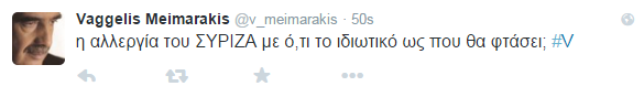 «Η αλλεργία του ΣΥΡΙΖΑ με ό,τι το ιδιωτικό ως που θα φτάσει;» έγραψε χαρακτηριστικά, πριν από λίγο, στο Twitter ο πρόεδρος της Νέας Δημοκρατίας, Βαγγέλης Μεϊμαράκης.