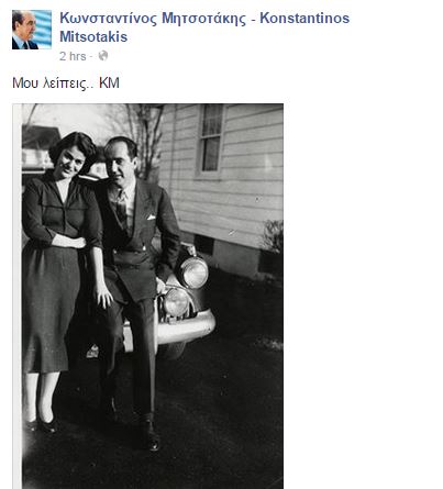 Ο επίτιμος πρόεδρος της Νέας Δημοκρατίας ανέβασε στο λογαριασμό του στο facebook μία παλιά φωτογραφία γράφοντας “Μου λείπεις”.