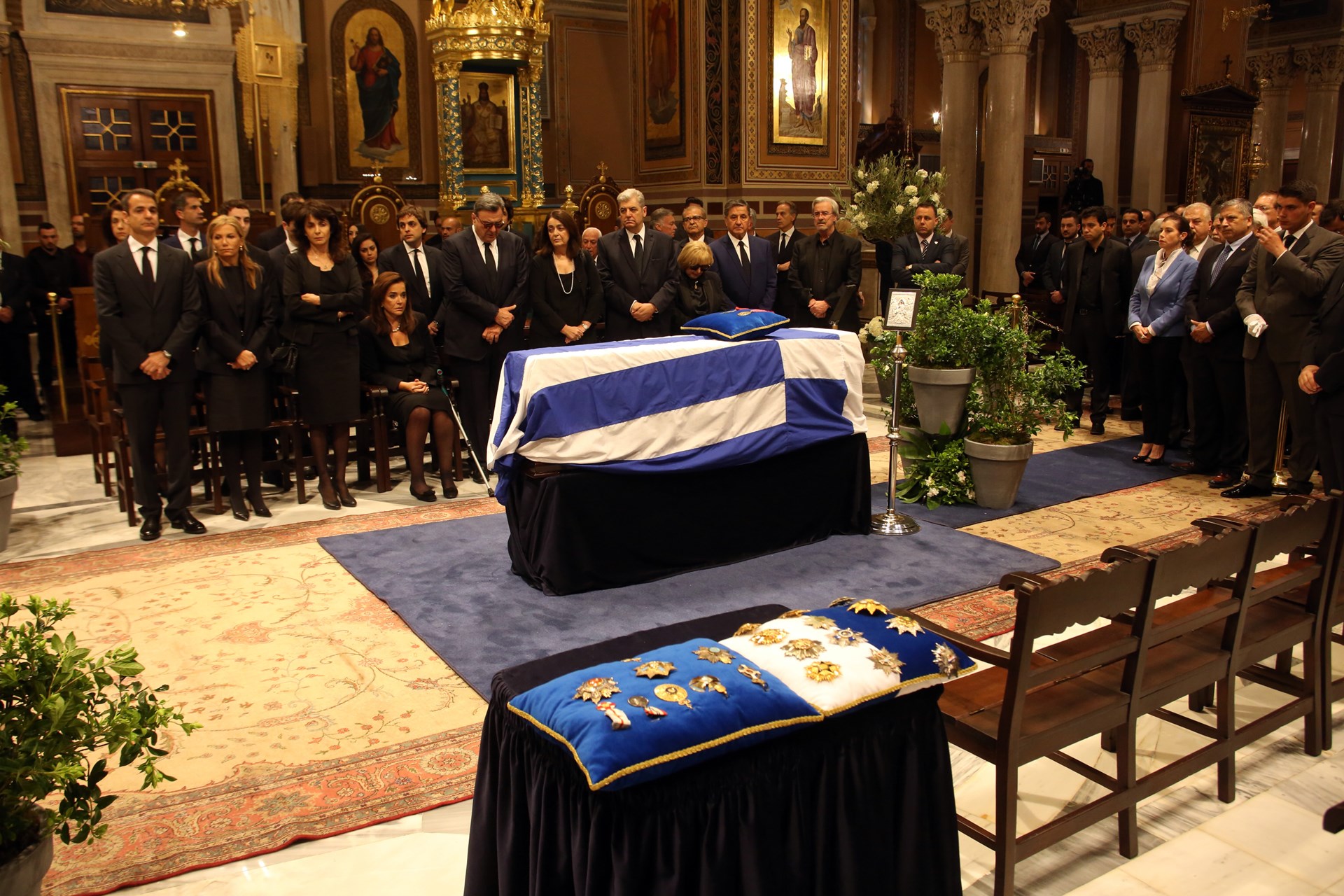 Η εξόδιος ακολουθία στην οποία χοροστάτησε ο αρχιεπίσκοπος Αθηνών Ιερώνυμος, άρχισε λίγο μετά τις 3:00 το μεσημέρι, και το άγημα από άνδρες των τριών όπλων απέδωσε τιμές.