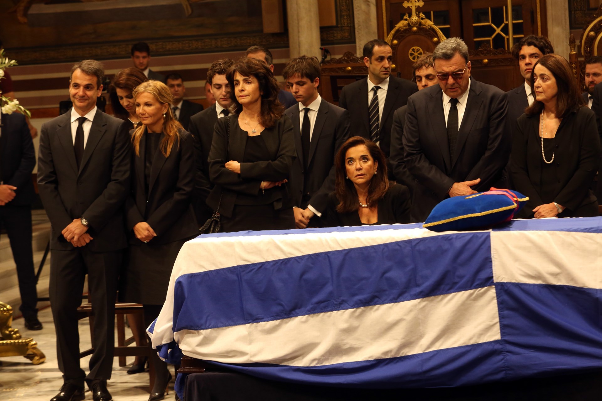 Εμφανώς συγκινημένη και καταβεβλημένη έφτασε, πριν από τις 7 το πρωί, η Ντόρα Μπακογιάννη στηριζόμενη σε πατερίτσα και συνοδευόμενη από τον σύζυγό της Ισίδωρο Κούβελo. Μαζί της ήταν και η αδελφή της Αικατερίνη Μητσοτάκη. Λίγα λεπτά αργότερα έφτασαν τα παιδιά της Ντόρας Μπακογιάννη, Αλεξία και Κώστας Μπακογιάννης, και στη συνέχεια ο πρόεδρος της Νέας Δημοκρατίας Κυριάκος Μητσοτάκης με τη σύζυγό του Μαρέβα.