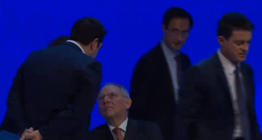 Σε πάνελ στο Νταβός, με θέμα το «μέλλον της Ευρώπης» βρέθηκε νωρίτερα ο Πρωθυπουργός Αλέξης Τσίπρας μαζί με τον Γερμανό υπουργό οικονομικών Βόλφγκανγκ Σόιμπλε. Μάλιστα όπως φαίνεται και στη φωτογραφία ο κ. Τσίπρας είχε μία σύντομη συνομιλία με τον Γερμανό υπουργό, με τις κάμερες όπως είναι λογικό να απαθανατίζουν το συγκεκριμένο στιγμιότυπο.