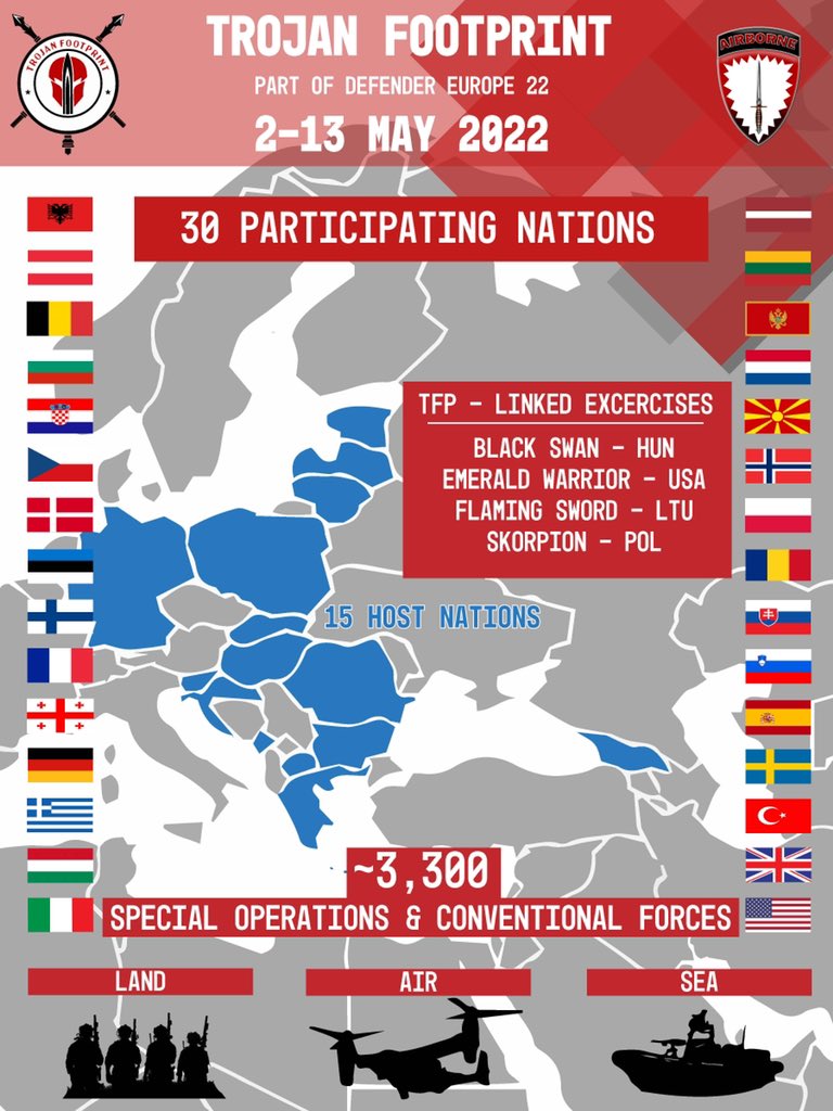 Από την Δευτέρα 2 έως την Παρασκευή 13 Μαΐου, στελέχη της νεότευκτης Διοίκησης Ειδικού Πολέμου (ΔΕΠ) του ΓΕΕΘΑ, πήραν μέρος στην πολυεθνική Άσκηση Δυνάμεων Ειδικών Επιχειρήσεων «TROJAN FOOTPRINT – 22» στην περιοχή της Αττικοβοιωτίας στην οποία συμμετείχαν εκτός της Χώρας μας και δυνάμεις Ειδικών Επιχειρήσεων από την Αλβανία, τη Γαλλία, το Ηνωμένο Βασίλειο, τις ΗΠΑ και την Ιταλία.