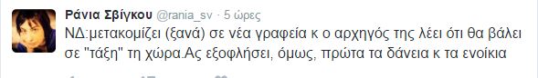 Η εκπρόσωπος Τύπου του ΣΥΡΙΖΑ, Ράνια Σβίγκου, σχολιάζοντας τη δήλωση του προέδρου της Νέας Δημοκρατίας, Κυριάκου, κατά την έναρξη λειτουργίας των νέων γραφείων του κόμματος, αναφέρει σε ανάρτησή της στο Twitter: