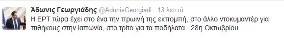 Πιο συγκεκριμένα ο κ. Άδωνις Γεωργιάδης έγραψε στον προσωπικό του λογαριασμό στο Twitter: