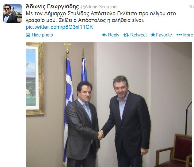 Το tweet του Άδωνι για τον Γκλέτσο Enikos Newsroom 16:33, Τετάρτη 16 Οκτωβρίου 2013 πολιτική Το tweet του Άδωνι για τον Γκλέτσο Συνάντηση με τον δήμαρχο Στυλίδας Απόστολο Γκλέτσο είχε ο Άδωνις Γεωργιάδης. Ο υπουργός Υγείας ανέβασε στο twitter μία φωτογραφία και έγραψε: «Σκίζει ο Απόστολος η αλήθεια είναι». TWITTER ΑΔΩΝΙΣ ΓΕΩΡΓΙΑΔΗΣ ΑΠΟΣΤΟΛΟΣ ΓΚΛΕΤΣΟΣ ΣΥΝΑΝΤΗΣΗ Μοιράσου το: σχολίασε κι εσύ (0 σχόλια) Ακολουθήστε το enikos.gr στο Google News και μάθετε πρώτοι όλες τις ειδήσεις Δείτε όλες τις τελευταίες ειδήσεις από την Ελλάδα και τον Κόσμο στο enikos.gr Ειδήσεις Ροή Ειδήσεων 2 ώρες πριν Κύκλωμα διακίνησης ναρκωτικών σε σχολεία: Βίντεο ντοκουμέντο από τα βασανιστήρια στους ανήλικους – Συζητούσαν για το πώς θα κάνουν «ξέπλυμα χρήματος» 27 λεπτά πριν Κλιμακώνουν τις κινητοποιήσεις τους οι αγρότες: Κλείνουν τη Δευτέρα τις σήραγγες των Τεμπών για τα φορτηγά – Ανοίγουν την Τρίτη τους δρόμους για τους εκδρομείς 1 ώρα πριν Αιματηρό επεισόδιο στον Άγιο Παντελεήμονα – Δύο τραυματίες, αναζητείται ο δράστης 36 λεπτά πριν ΗΠΑ: Αυξάνουν την πίεση στην Βενεζουέλα – Το νέο ρεσάλτο σε τάνκερ και ο στόχος του Τραμπ 1 ώρα πριν Κασσελάκης για παραίτηση Μάλαμα: «Η πορεία μας δεν θα καθοριστεί από μεμονωμένα πρόσωπα, μηχανισμούς και προσωπικές ατζέντες» 1 ώρα πριν Ύπνος: Τι είναι ο «κανόνας 3-3-3» που χρησιμοποιεί ένας γιατρός για να ξεχωρίσει την κόπωση από την αϋπνία 2 ώρες πριν Αριθμολογία: Οι άνθρωποι που έχουν γεννηθεί αυτές τις 4 ημερομηνίες, είναι οι πιο πιστοί και αφοσιωμένοι σύντροφοι 23 λεπτά πριν Αρχαιολογικό θρίλερ στην καρδιά της Ευρώπης: Παράξενο θραύσμα με ανάγλυφα και σφηνοειδή γραφή ανακαλύφθηκε σε μέρος που δεν περίμενε κανείς 2 ημέρες πριν Enerwave: Το νέο «ρεύμα» στη λιανική ενέργειας που αλλάζει την εμπειρία του καταναλωτή 19 λεπτά πριν ΑΕΚ – ΟΦΗ 2-1: Γιορτές στην κορυφή με… ανατροπή 23 λεπτά πριν Αρχαιολογικό θρίλερ στην καρδιά της Ευρώπης: Παράξενο θραύσμα με ανάγλυφα και σφηνοειδή γραφή ανακαλύφθηκε σε μέρος που δεν περίμενε κανείς 27 λεπτά πριν Κλιμακώνουν τις κινητοποιήσεις τους οι αγρότες: Κλείνουν τη Δευτέρα τις σήραγγες των Τεμπών για τα φορτηγά – Ανοίγουν την Τρίτη τους δρόμους για τους εκδρομείς 28 λεπτά πριν Γουίτκοφ: «Εποικοδομητικές και παραγωγικές» οι συνομιλίες στο Μαϊάμι 36 λεπτά πριν ΗΠΑ: Αυξάνουν την πίεση στην Βενεζουέλα – Το νέο ρεσάλτο σε τάνκερ και ο στόχος του Τραμπ ENIKOS NETWORK Οι γυναίκες έχουν βρει μια νέα απόλαυση στην κρεβατοκάμαρα που οι περισσότεροι άνδρες αγνοούν Christmas glow: 5 χρυσές συμβουλές για επιδερμίδα που λάμπει από ομορφιά τα Χριστούγεννα Νέο έτος ρεκόρ για τον ελληνικό τουρισμό το 2025: «Είμαστε μέσα στους 10 πλέον επισκέψιμους προορισμούς παγκοσμίως» λέει η ... Τιμές καυσίμων: Πόσο θα πληρώσουν οι εκδρομείς των Χριστουγέννων – Το κόστος μετακινήσεων σε δημοφιλείς προορισμούς Χαρτογραφώντας το «σημείο χωρίς επιστροφή»: Για πρώτη φορά αποκαλύπτεται με λεπτομέρεια το ακανθώδες όριο της ατμόσφαιρας τ... Η Google καταργεί τη λειτουργία «dark web report» – Πώς θα μπορούν οι χρήστες να διαγράφουν τα δεδομένα τους περισσότερα 20:50 , Κυριακή 21 Δεκεμβρίου 2025 Αποχώρησε από το Κίνημα Δημοκρατίας η Κυριακή Μάλαμα – Οι αιχμές για τον Στέφανο Κασσελάκη Την αποχώρησή της από το Κίνημα Δημοκρατίας ανακοίνωσε το απόγευμα της Κυριακής 21 Δεκεμβρίου ... 14:00 , Κυριακή 21 Δεκεμβρίου 2025 Άκης Σκέρτσος: Τι έγινε τελικά με την Έκθεση Πισσαρίδη; Στο μεταρρυθμιστικό πρόγραμμα της κυβέρνηση
