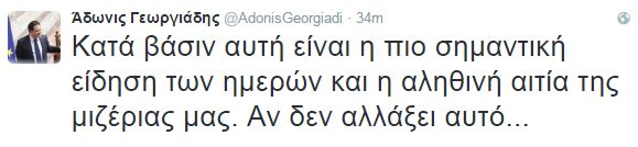 «Κατά βάσιν αυτή είναι η πιο σημαντική είδηση των ημερών και η αληθινή αιτία της μιζέριας μας. Αν δεν αλλάξει αυτό…» έγραψε ο κ. Γεωργιάδης παραθέτοντας την είδηση.