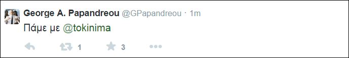 Λίγο πριν αρχίσει η ομιλία του για την παρουσίαση του νέου κόμματος, ο Γιώργος Παπανδρέου έγραψε στο twitter: