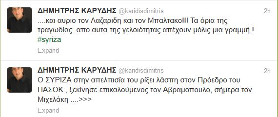 Το tweet του Kαρύδη για τον ΣΥΡΙΖΑ