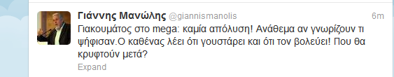 Το tweet του Μανώλη για τον Γιακουμάτο