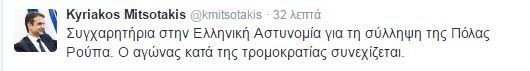 Τα συγχαρητήριά του στην Ελληνική Αστυνομία για τη σύλληψη της Πόλας Ρούπα έδωσε ο πρόεδρος της ΝΔ, Κυριάκος Μητσοτάκης με ανάρτησή του στο Twitter.
