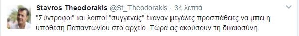 Με ανάρτηση του στο twitter o επικεφαλής του Ποταμιού Σταύρος Θεοδωράκης σχολιάζοντας τις τελευταίες εξελίξεις στην υπόθεση του Γιάννου Παπαντωνίου επεσήμανε:
