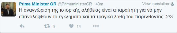 Ο Πρωθυπουργός υπογραμμίζει επίσης ότι «η αναγνώριση της ιστορικής αλήθειας είναι απαραίτητη για να μην επαναληφθούν τα εγκλήματα και τα τραγικά λάθη του παρελθόντος».