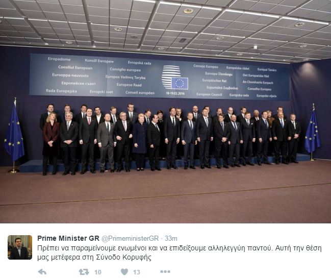 “Πρέπει να παραμείνουμε ενωμένοι και να επιδείξουμε αλληλεγγύη παντού. Αυτή την θέση μας μετέφερα στη Σύνοδο Κορυφής” έγραψε ο Πρωθυπουργός.