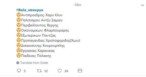 Το hashtag #Βάλε_υπουργό έχει μπει στα πιο δημοφιλή, με τους χρήστες του twitter να προτείνουν υπουργούς για τον ανασχηματισμό που σύμφωνα με πληροφορίες ετοιμάζει ο Πρωθυπουργός, Αλέξης Τσίπρας.